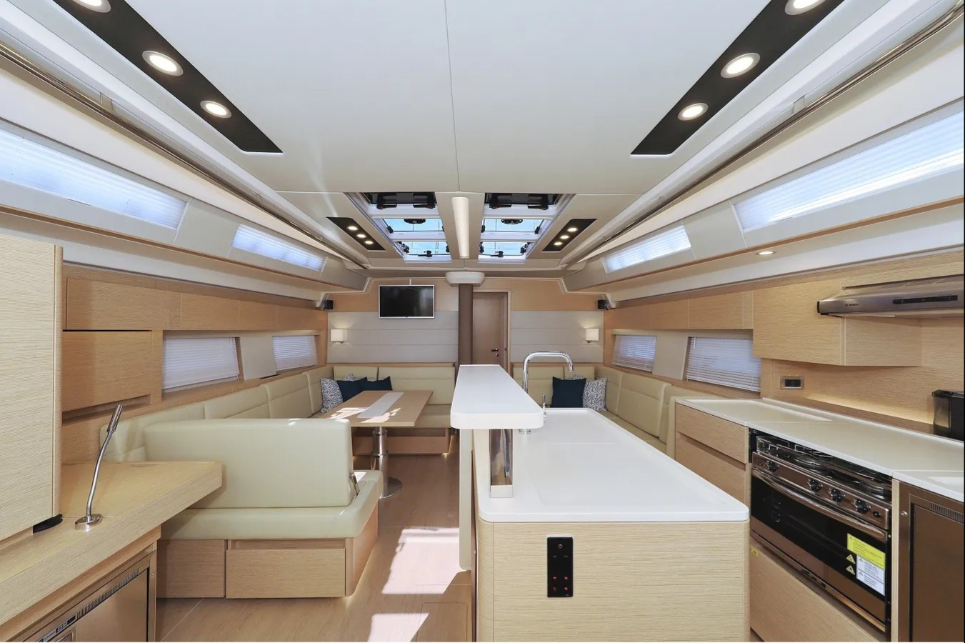 | Inside | Gas stove with oven, Freezer, Generator, Dishwasher, Heating, Inverter 12V/220V, Airconditioning (independent from shore power), Refrigerator, TV, Watermaker, WC (electr.) |