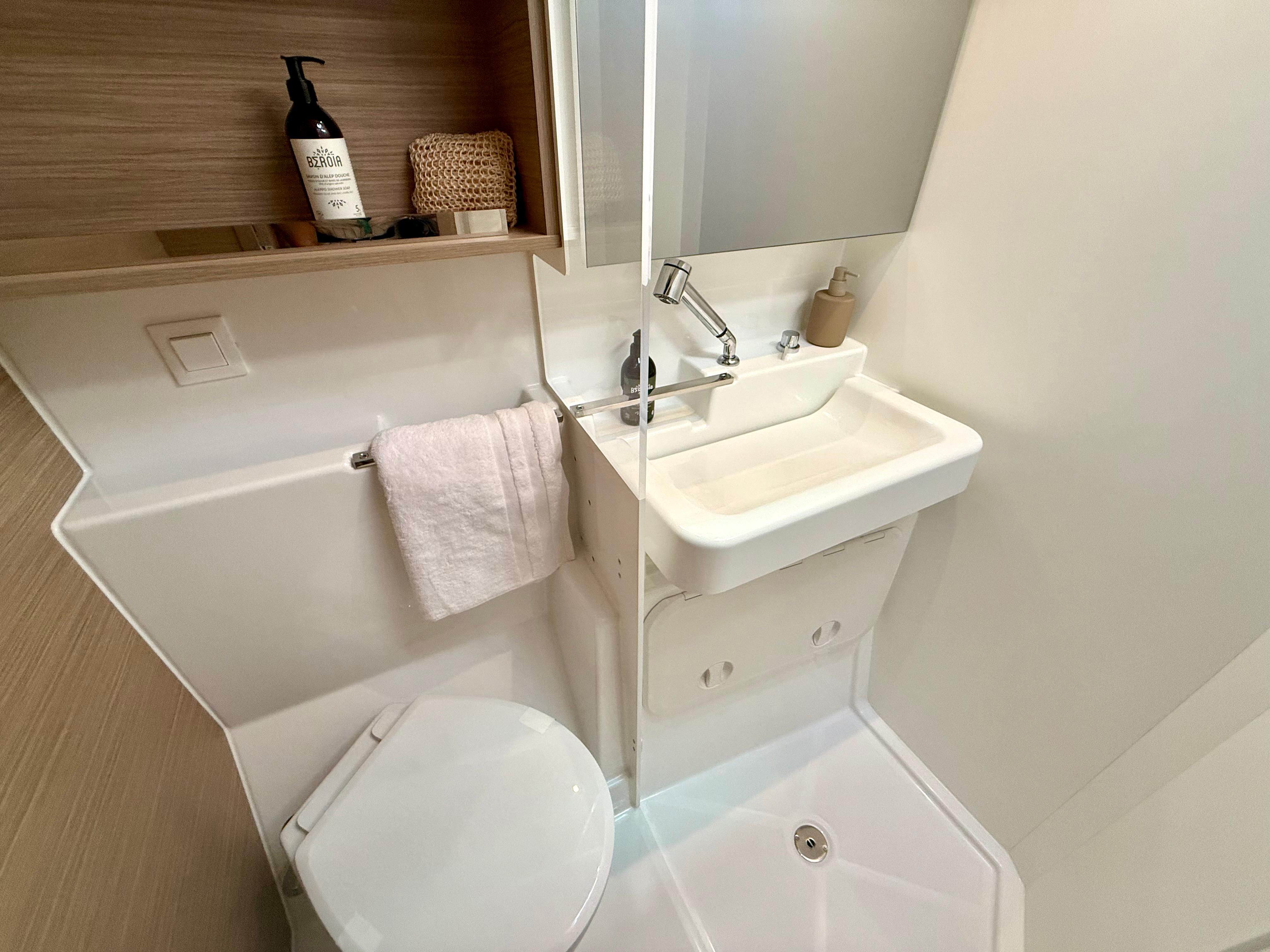 | Inside | Generator, Airconditioning (independent from shore power), Convertible salon table, USB Socket, USB sockets in the cabins, Cabin & dining area fan |
