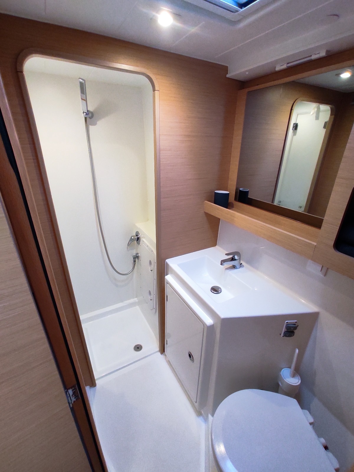 | Outside | Anchor with chain, Bimini top, Cockpit shower, Cockpit speakers, Cockpit cushions, Electr. anchor windlass, electr. winch |