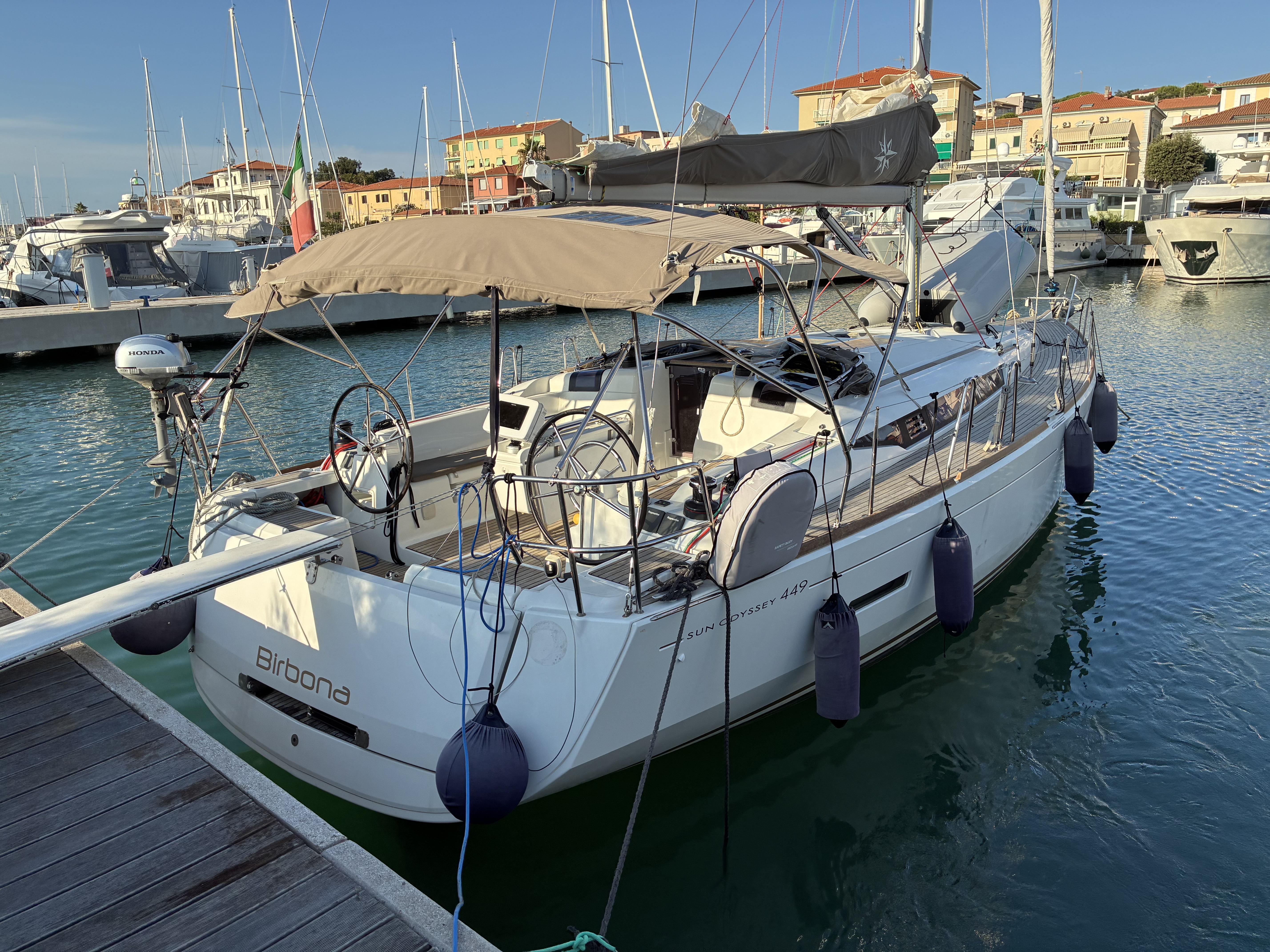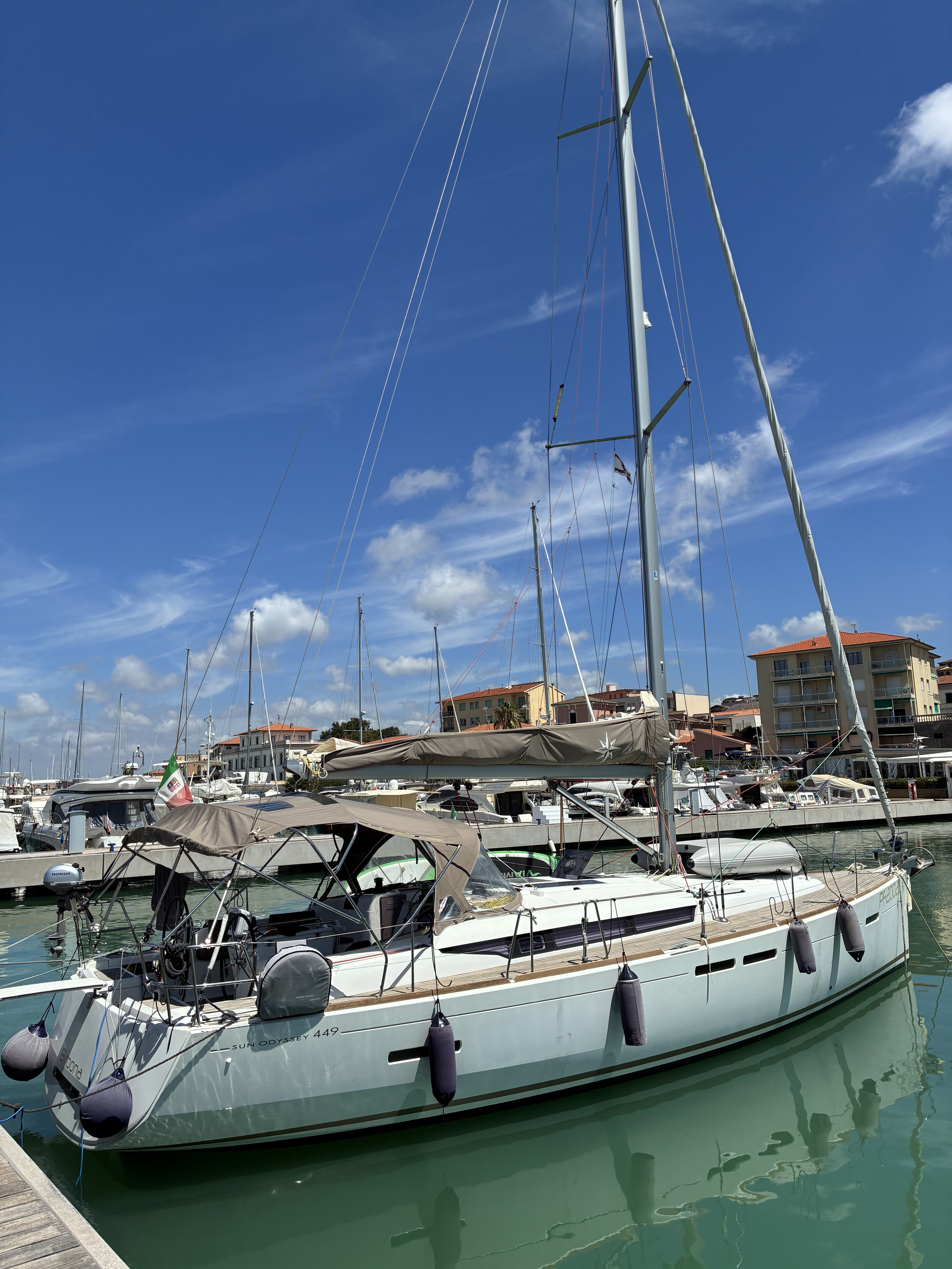 | Navigation | Barometer, Echo sounder, Electr. nautical charts, Binoculars, GPS with chart plotter in cockpit, Harbour books, Hand bearing compass, Compass, Navigation set, Nautical charts, Log, Anemometer |