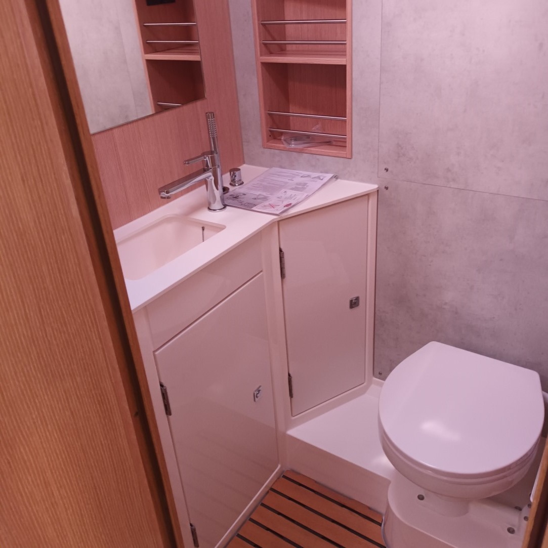 | Outside | Bimini top, Cockpit shower, Electr. anchor windlass, Sprayhood, Windex |