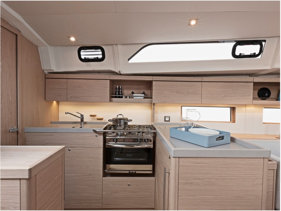 | Outside | 220V shore connection, Anchor with chain, Bathing platform, Bimini top, Cockpit shower, Electr. anchor windlass, Windex |