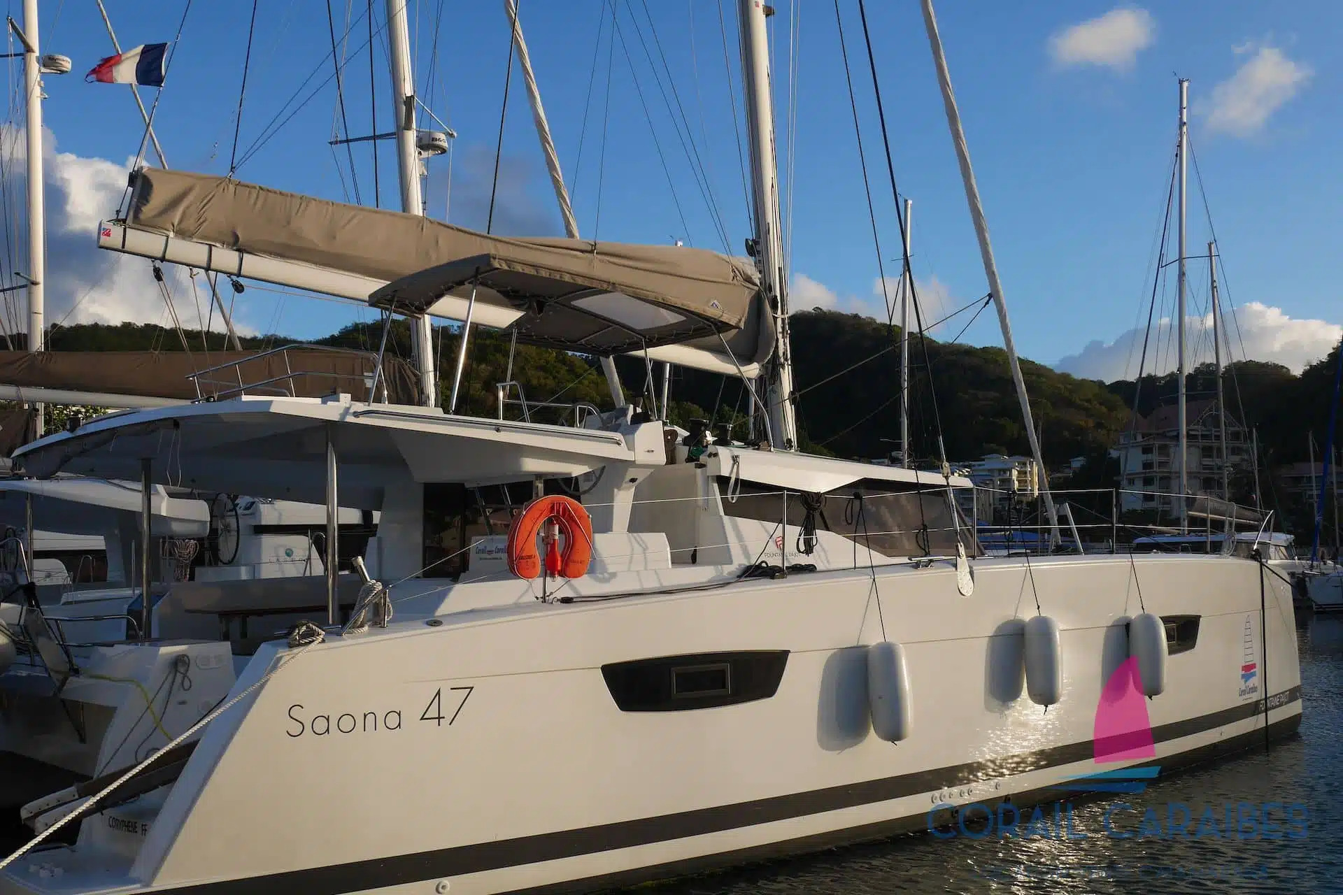 | Outside | Anchor with chain, Outside shower, Boat hook, Fender, Snorkeling gear |