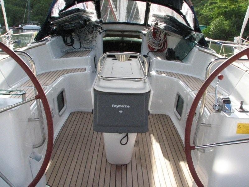 | Outside | Bathing ladder, Bimini top, Cockpit speakers, Cockpit cushions, Cockpit table, Electr. anchor windlass, Stern shower, Self-tailing winches, Solar panels, Sprayhood, Windex |