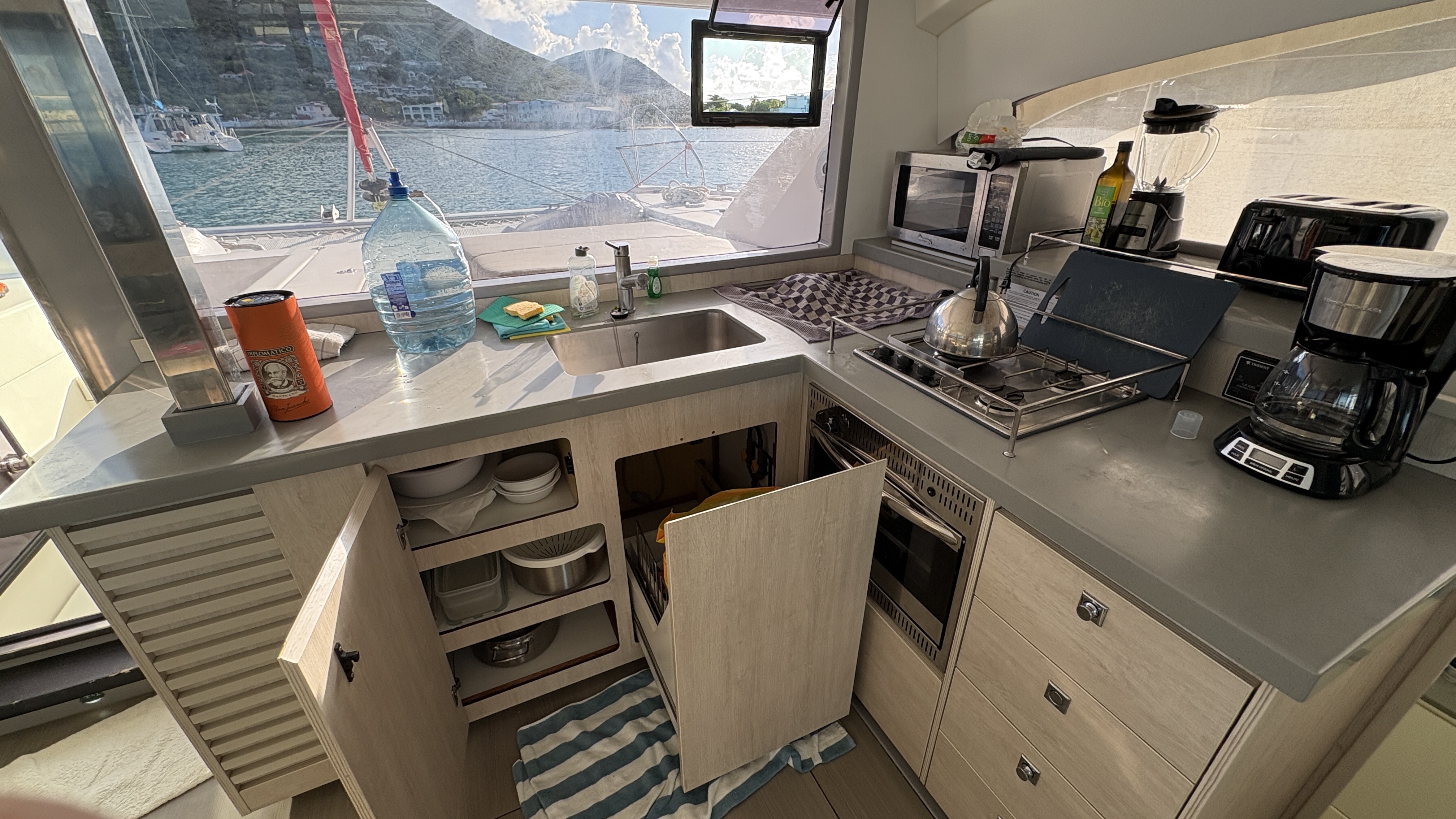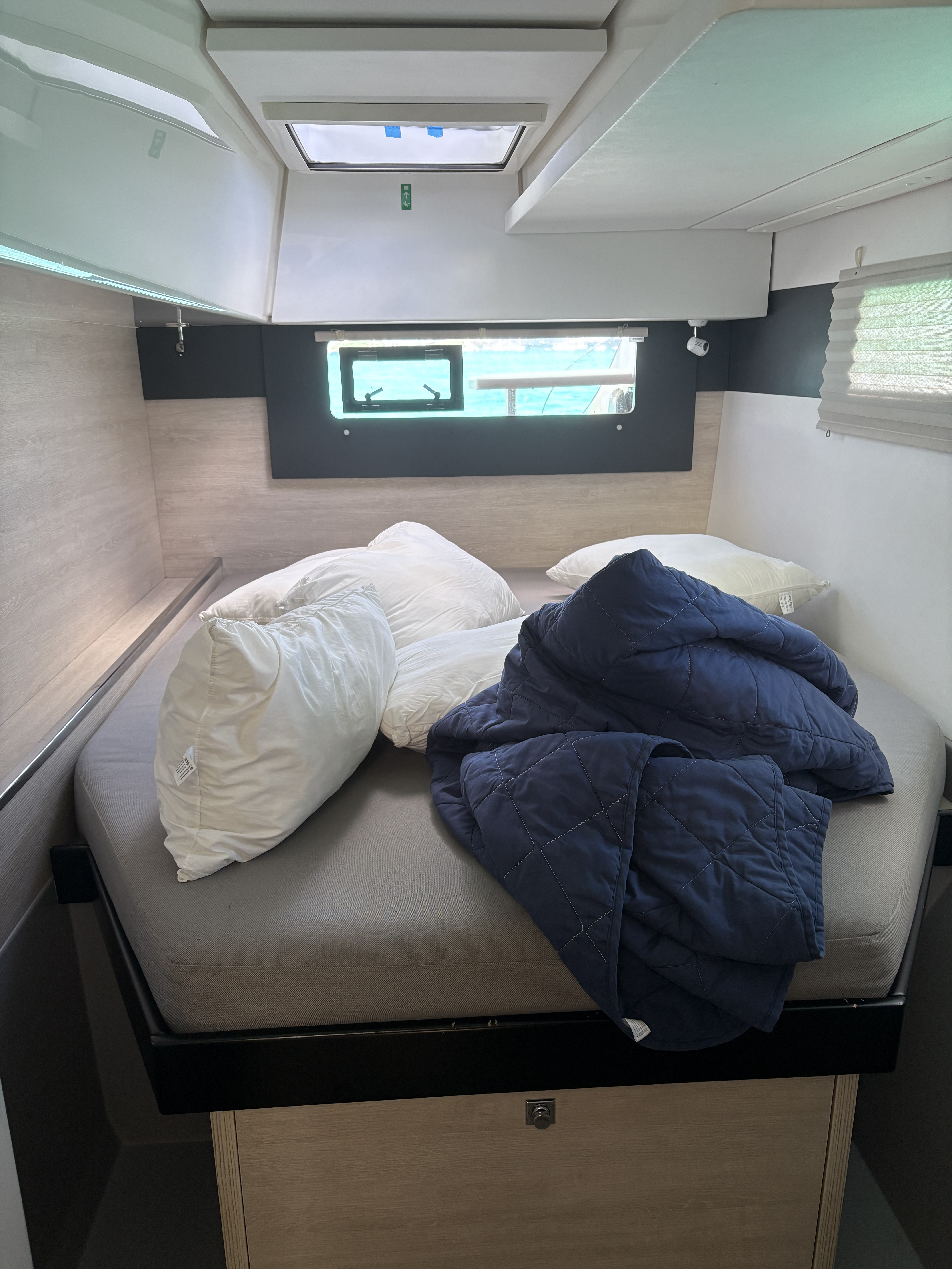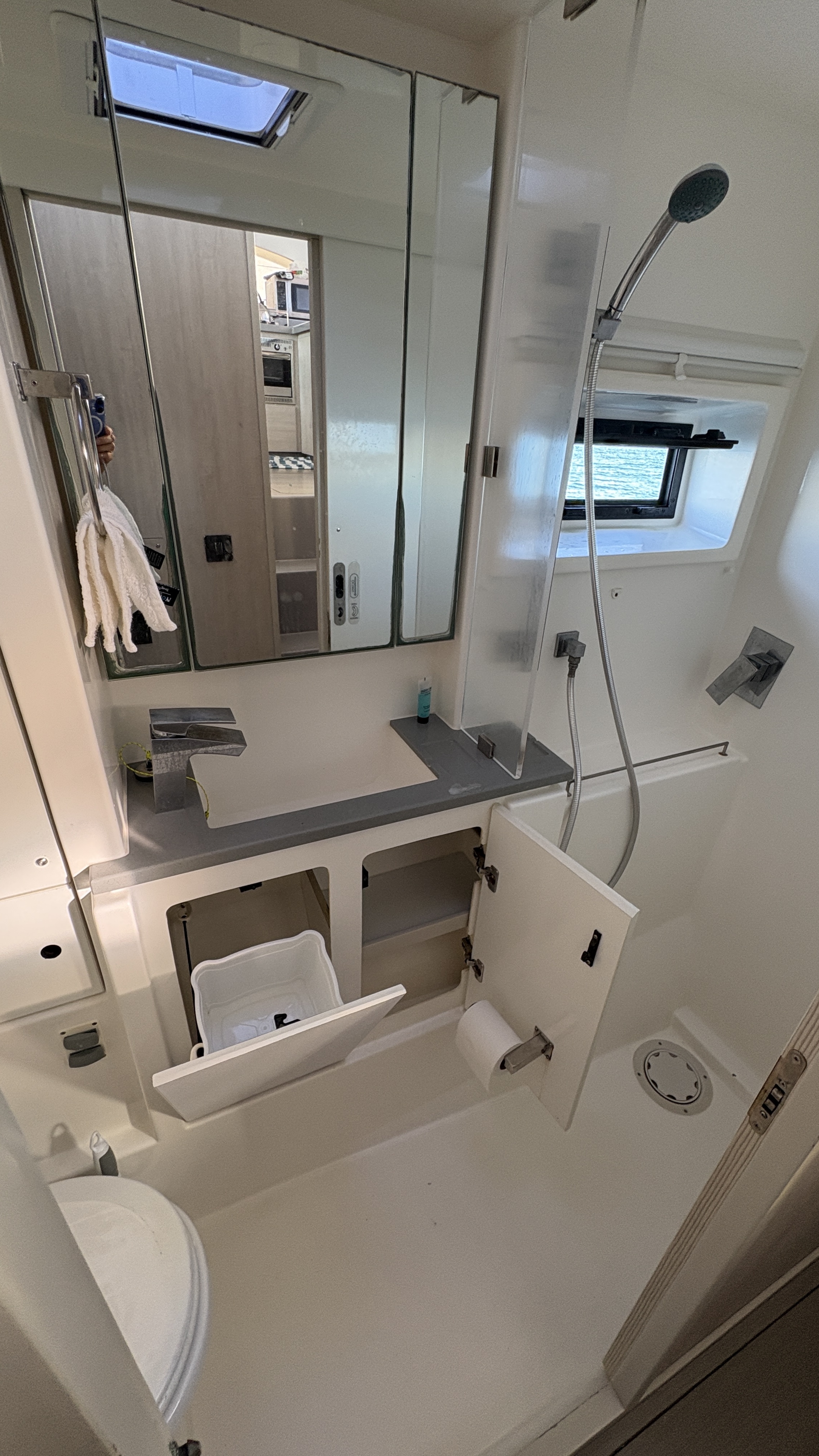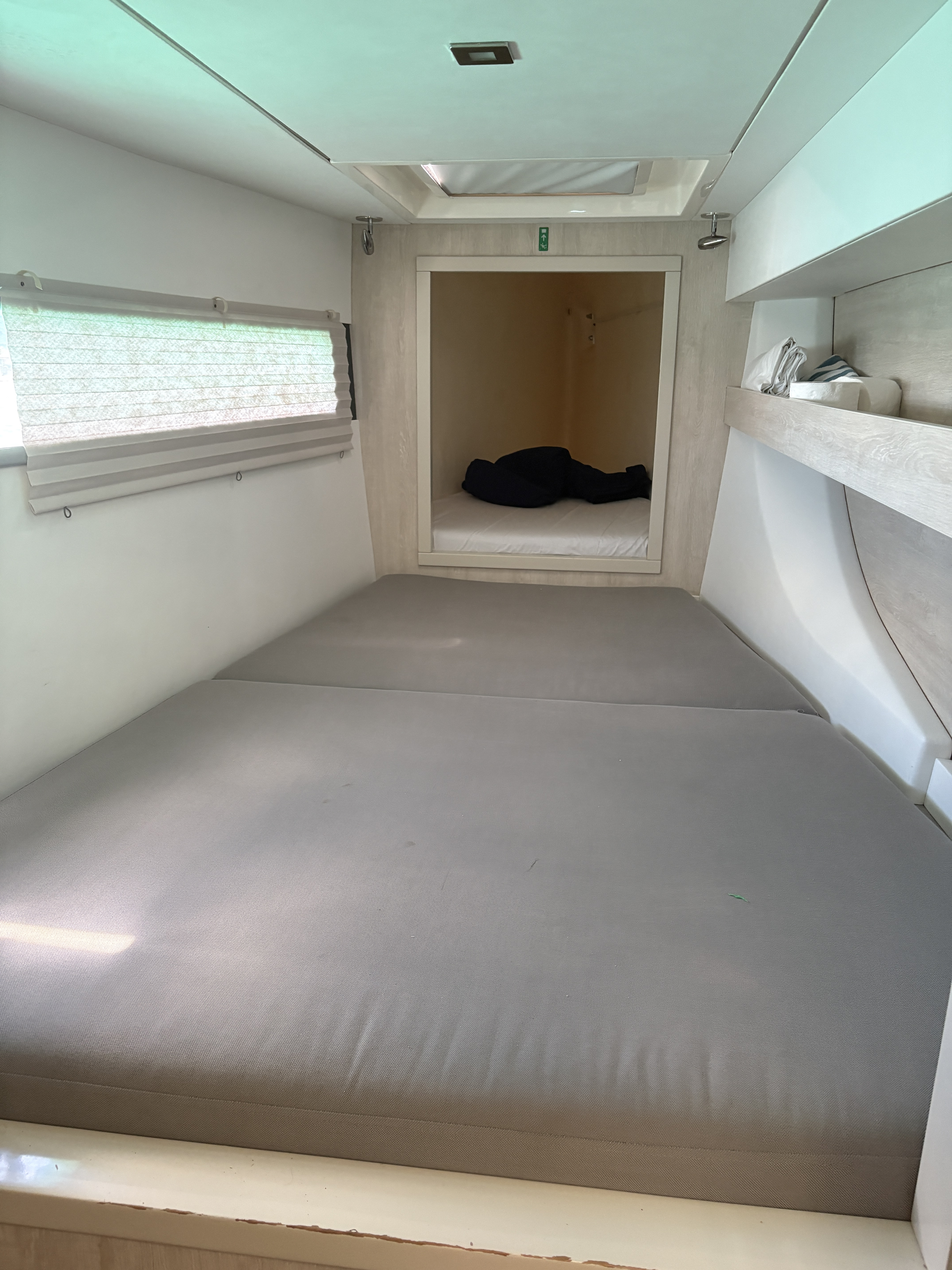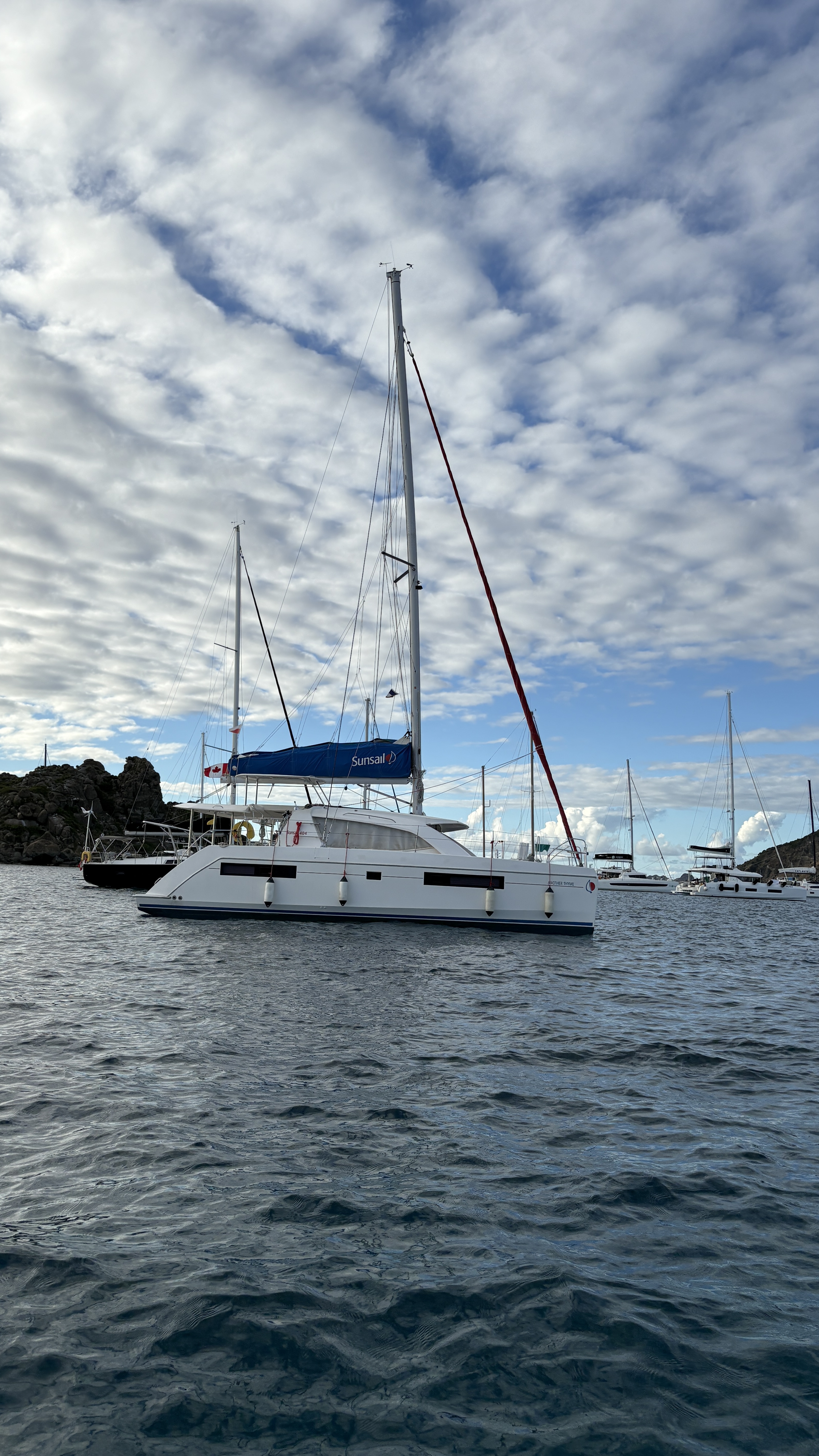 Die Sunsail 404 war grundsätzlich OK für 2 Paare. Man hat schon gemerkt, dass Sie jetzt am Ende ihrer Charterperiode angelangt ist. Moorings teilte uns auch mit, dass das vermutlich die letzte Saison ist. Der Generator war etwas schwach und man musste diesen 3-4 Std. pro Tag laufen lassen damit man so halbwegs durch die Nacht kam. Es gab wiedersprüchliche Aussagen, wie man die Batterie, die eher in schlechtem Zustand war, am besten lädt. Die Einschulung war zückblickend doch recht hastig und wir haben im Laufe des Turns dann mit Rückfragen das Schiff besser kennengelernt. In einer Bucht wurde die Yacht umgestellt ohne das man uns hier informiert hat um bei drehenden Winden Kollisionen zu vermeiden. Das ist zwar sehr umsichtig, doch ein Anruf hätte genügt und wir hätten davon gewusst. Man hat sich da offensichtlich einen Spaß erlaubt. Grundsätzlich waren aber alle sehr freundlich und hilfsbereit. Man kann Moorings/Sunsail vor Ort gut weiterempfehlen. Betankung und Rückgabe der Yacht haben Sie selbst übernommen und wir haben nur assistiert und als wir mal technischen Service haben wollten haben sie sehr schnell reagiert und wir konnten schnell weitersegeln. Die Unterstützung beim Ein- Ausklarieren war auch sehr gut. Steckdosen liefen nur, wenn man den Generator hat laufen lassen, mit Motor lief dieser nicht. Die Fotovoltaik an Bord konnte man vergessen, die war nur zierde. Beiboot war OK, hat aber nach einer Woche fix Luft verloren. Mit dem Wasservorrat sind 4 Personen gut ausgekommen und das Tanken war auch kostengünstig. Wir sind viel gesegelt (85 sm) und mussten nur 41 l nachtanken.