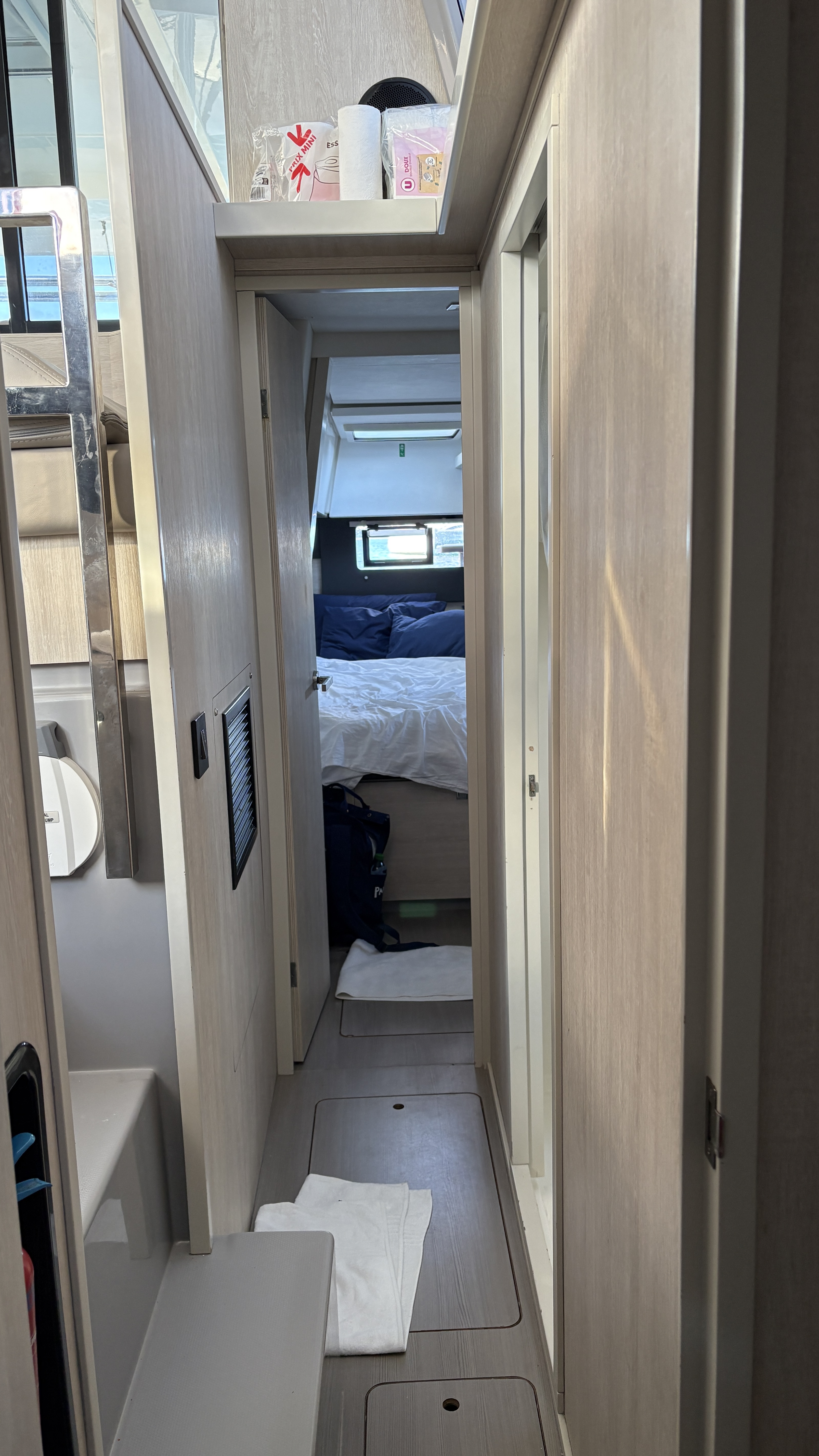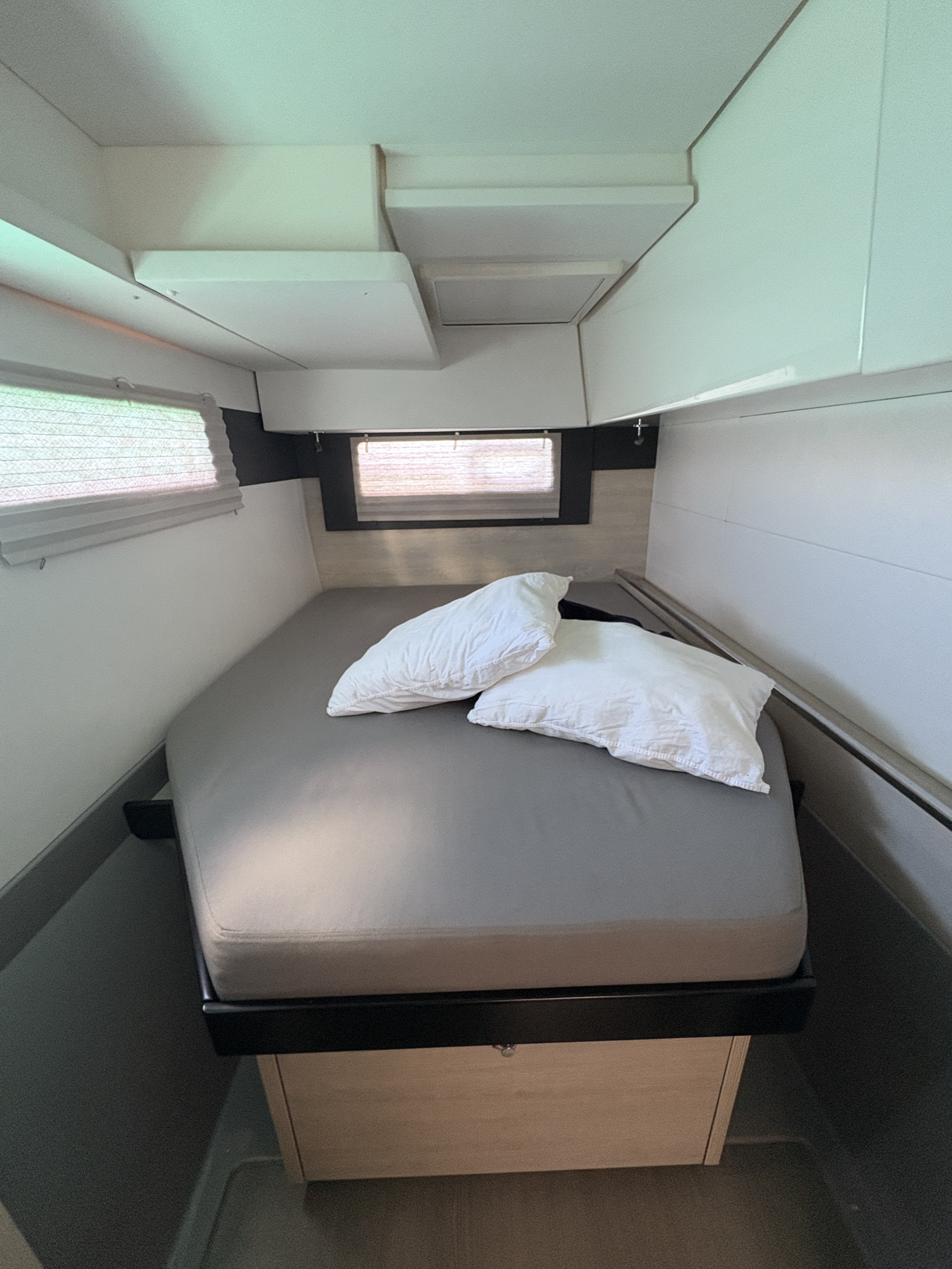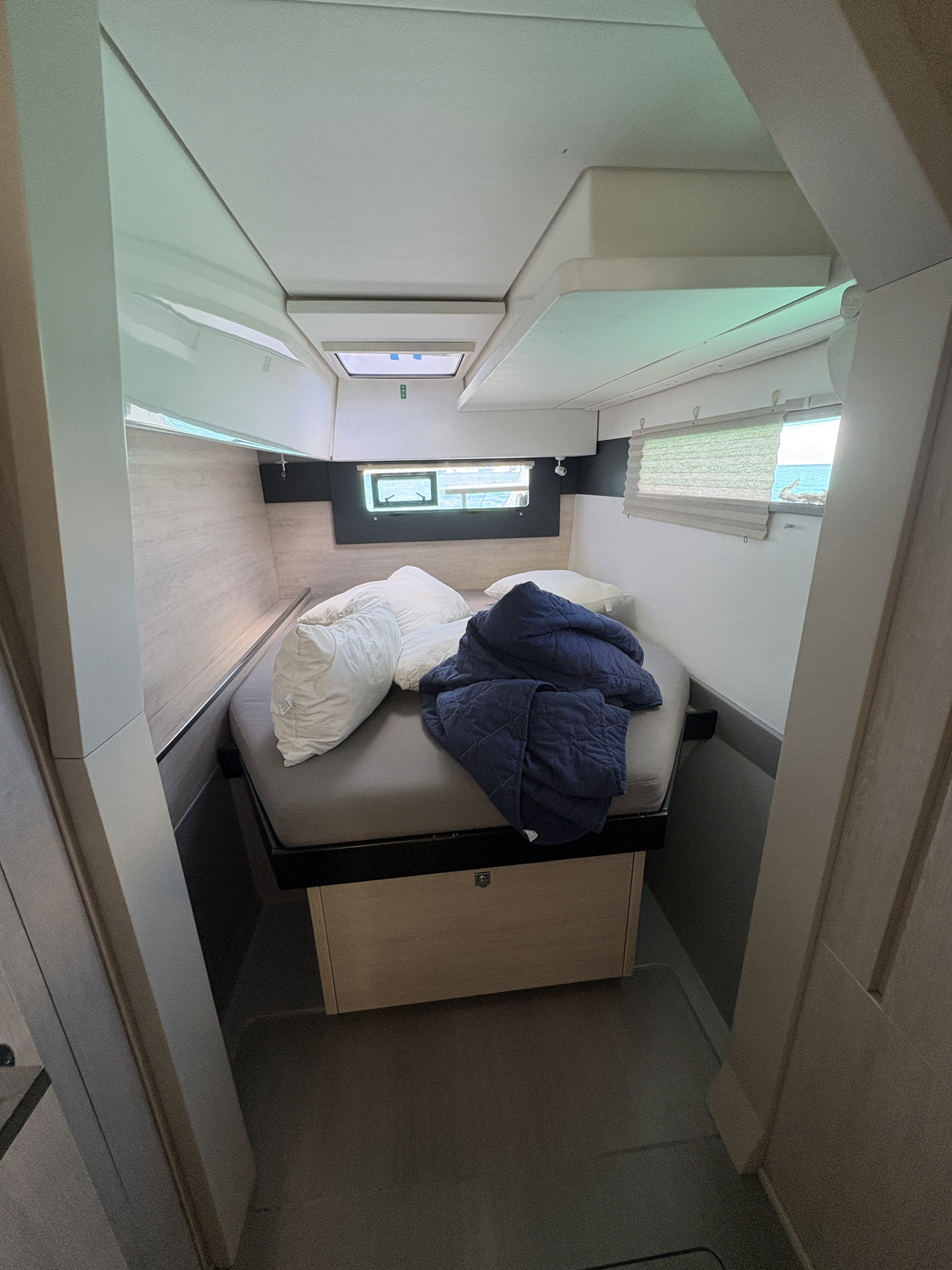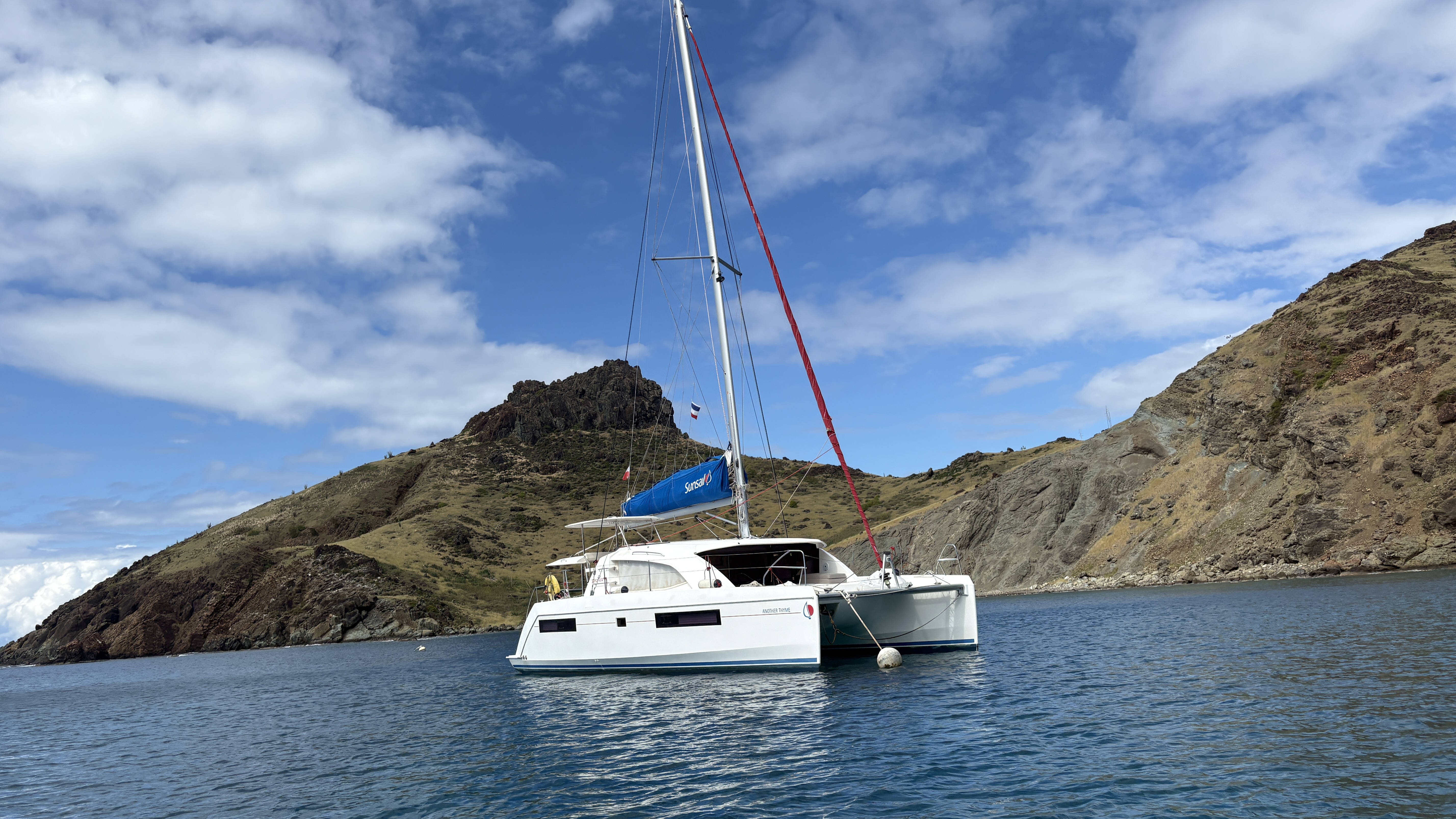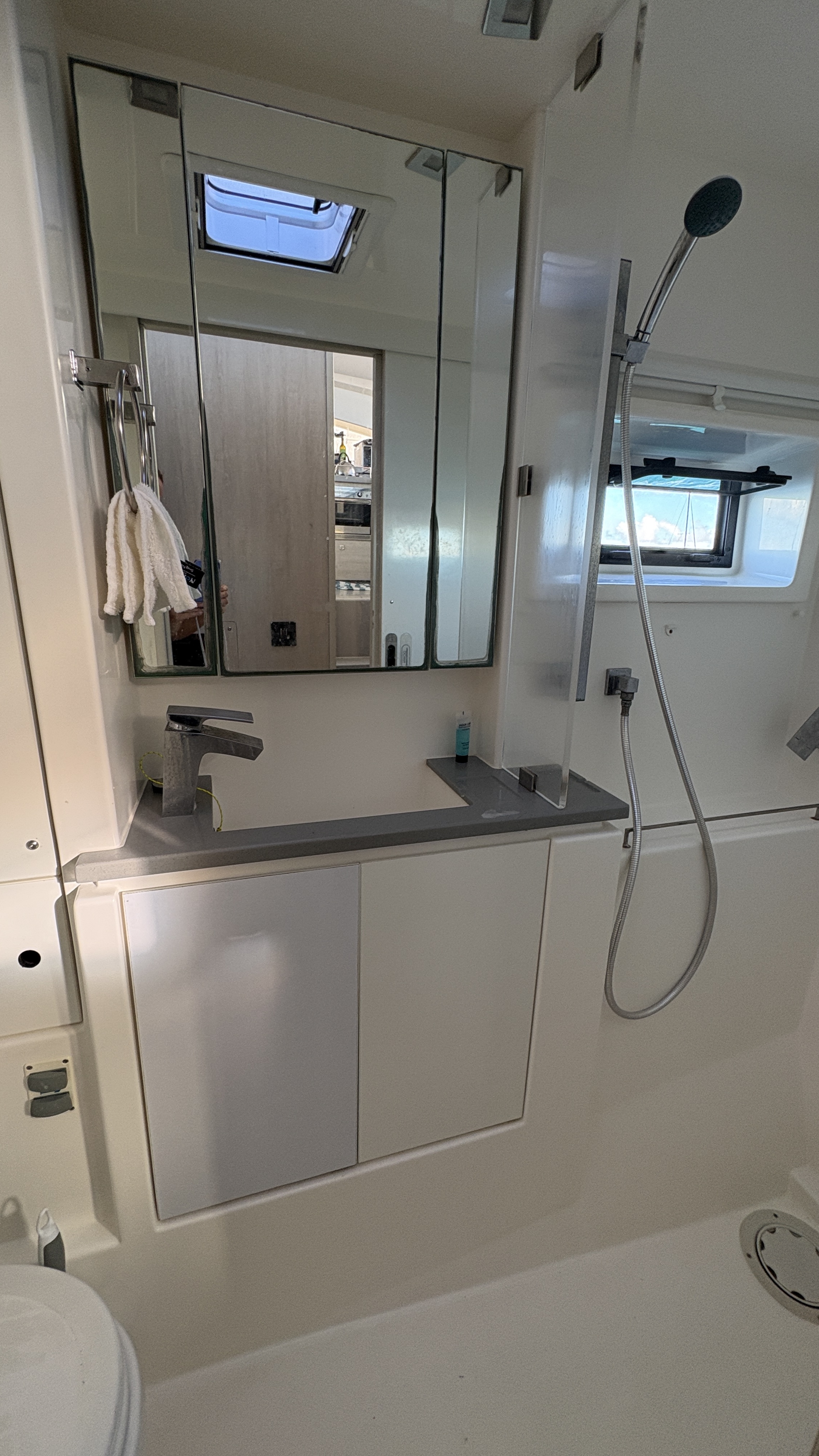 Die Sunsail 404 war grundsätzlich OK für 2 Paare. Man hat schon gemerkt, dass Sie jetzt am Ende ihrer Charterperiode angelangt ist. Moorings teilte uns auch mit, dass das vermutlich die letzte Saison ist. Der Generator war etwas schwach und man musste diesen 3-4 Std. pro Tag laufen lassen damit man so halbwegs durch die Nacht kam. Es gab wiedersprüchliche Aussagen, wie man die Batterie, die eher in schlechtem Zustand war, am besten lädt. Die Einschulung war zückblickend doch recht hastig und wir haben im Laufe des Turns dann mit Rückfragen das Schiff besser kennengelernt. In einer Bucht wurde die Yacht umgestellt ohne das man uns hier informiert hat um bei drehenden Winden Kollisionen zu vermeiden. Das ist zwar sehr umsichtig, doch ein Anruf hätte genügt und wir hätten davon gewusst. Man hat sich da offensichtlich einen Spaß erlaubt. Grundsätzlich waren aber alle sehr freundlich und hilfsbereit. Man kann Moorings/Sunsail vor Ort gut weiterempfehlen. Betankung und Rückgabe der Yacht haben Sie selbst übernommen und wir haben nur assistiert und als wir mal technischen Service haben wollten haben sie sehr schnell reagiert und wir konnten schnell weitersegeln. Die Unterstützung beim Ein- Ausklarieren war auch sehr gut. Steckdosen liefen nur, wenn man den Generator hat laufen lassen, mit Motor lief dieser nicht. Die Fotovoltaik an Bord konnte man vergessen, die war nur zierde. Beiboot war OK, hat aber nach einer Woche fix Luft verloren. Mit dem Wasservorrat sind 4 Personen gut ausgekommen und das Tanken war auch kostengünstig. Wir sind viel gesegelt (85 sm) und mussten nur 41 l nachtanken.