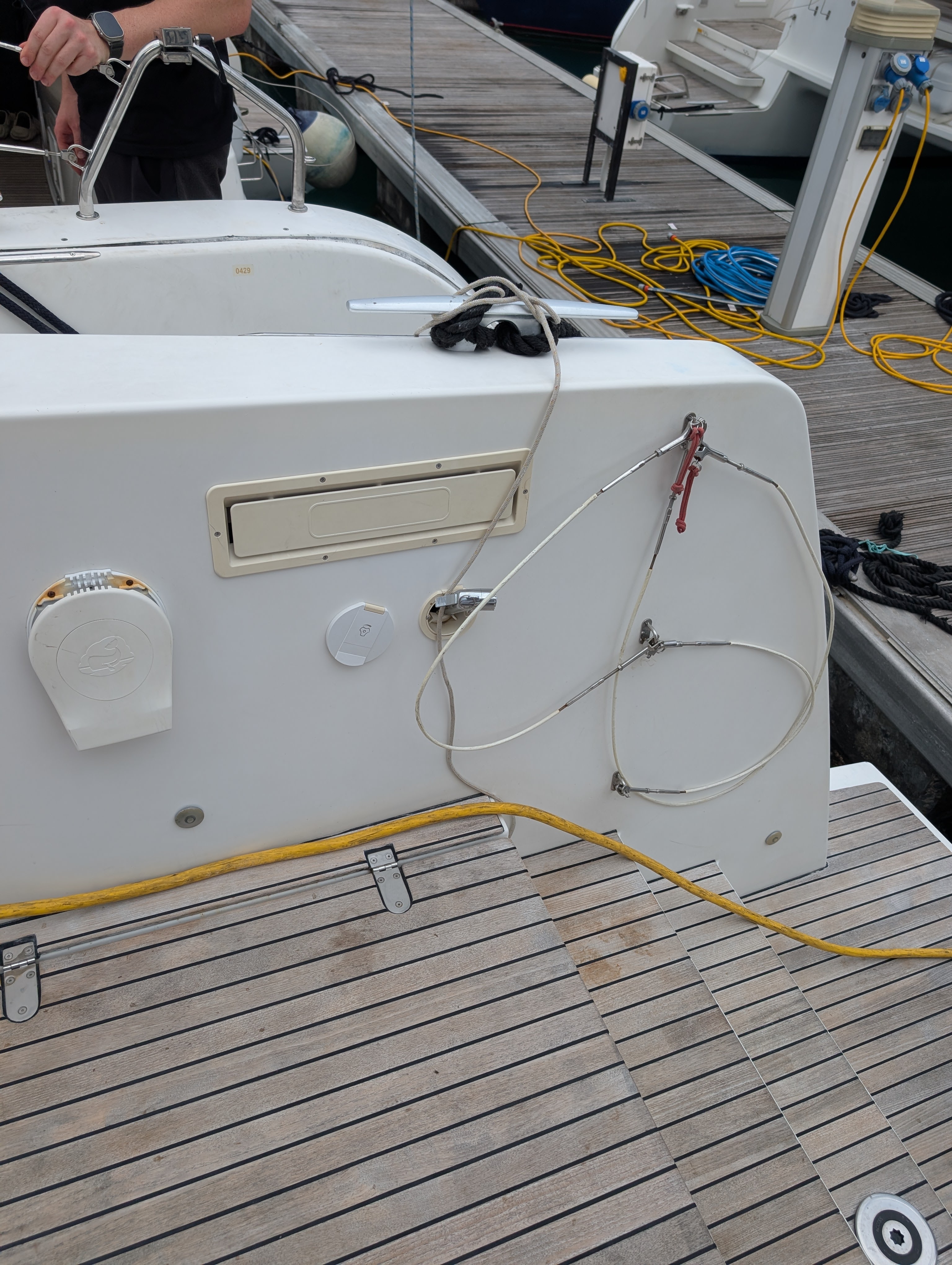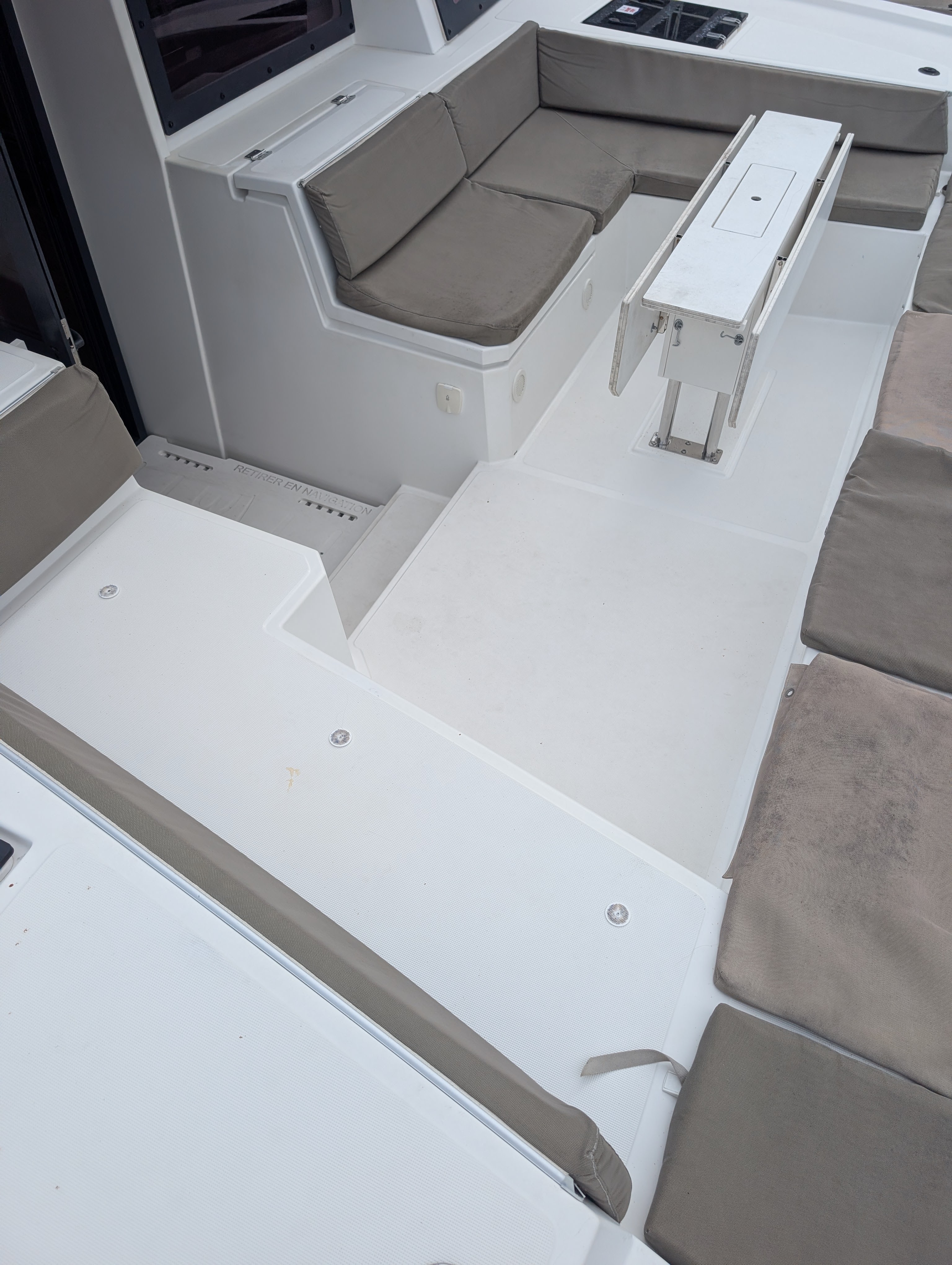 | Outside | Anchor chain counter, Bimini top, Refrigerator in cockpit, Cockpit speakers, Cockpit cushions, electr. winch, Teak in cockpit |