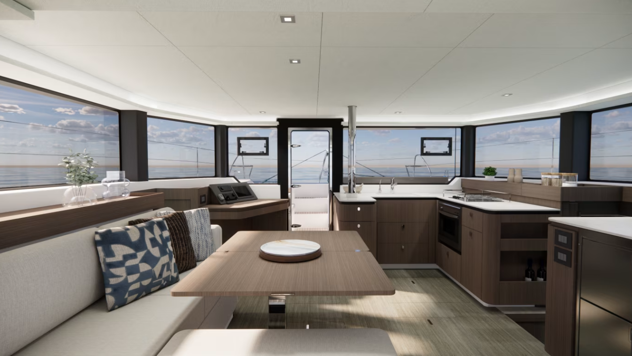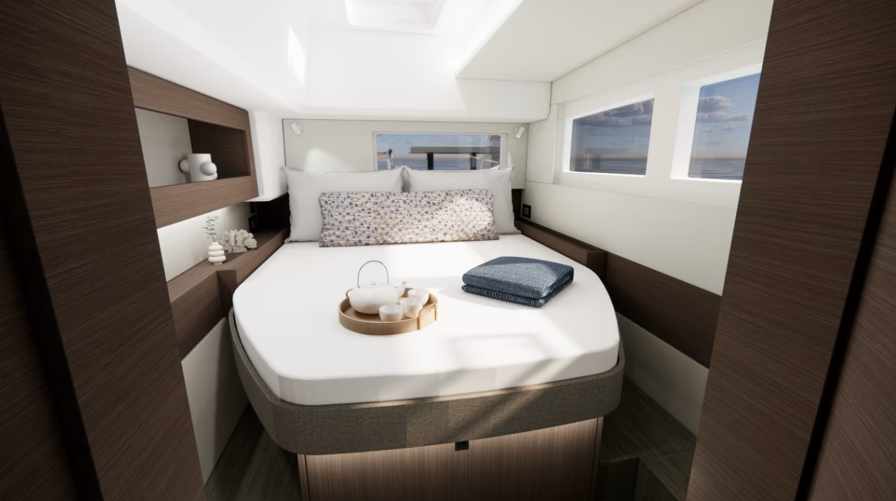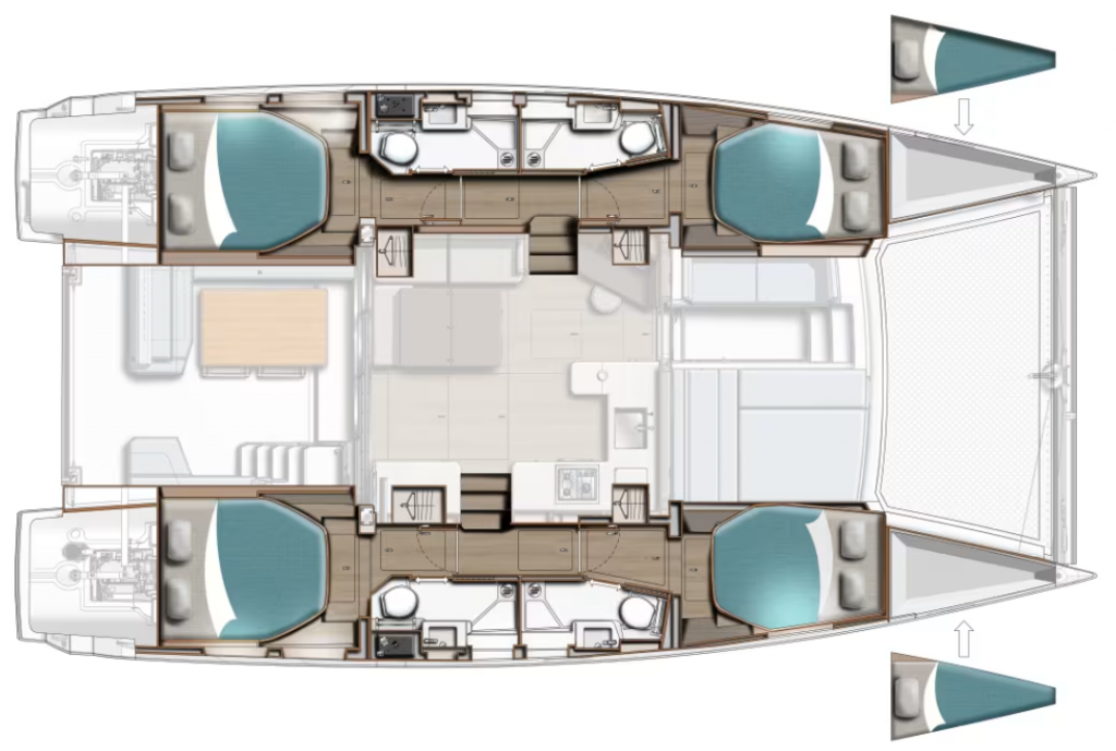 | Inside | Gas stove with oven, Generator, Inverter 12V/220V, Airconditioning (independent from shore power), fridge and freezer, Shore power cable, LED interior lights, Pantry equipment, Sink, TV, fans in cabins, Watermaker, WC (electr.) |