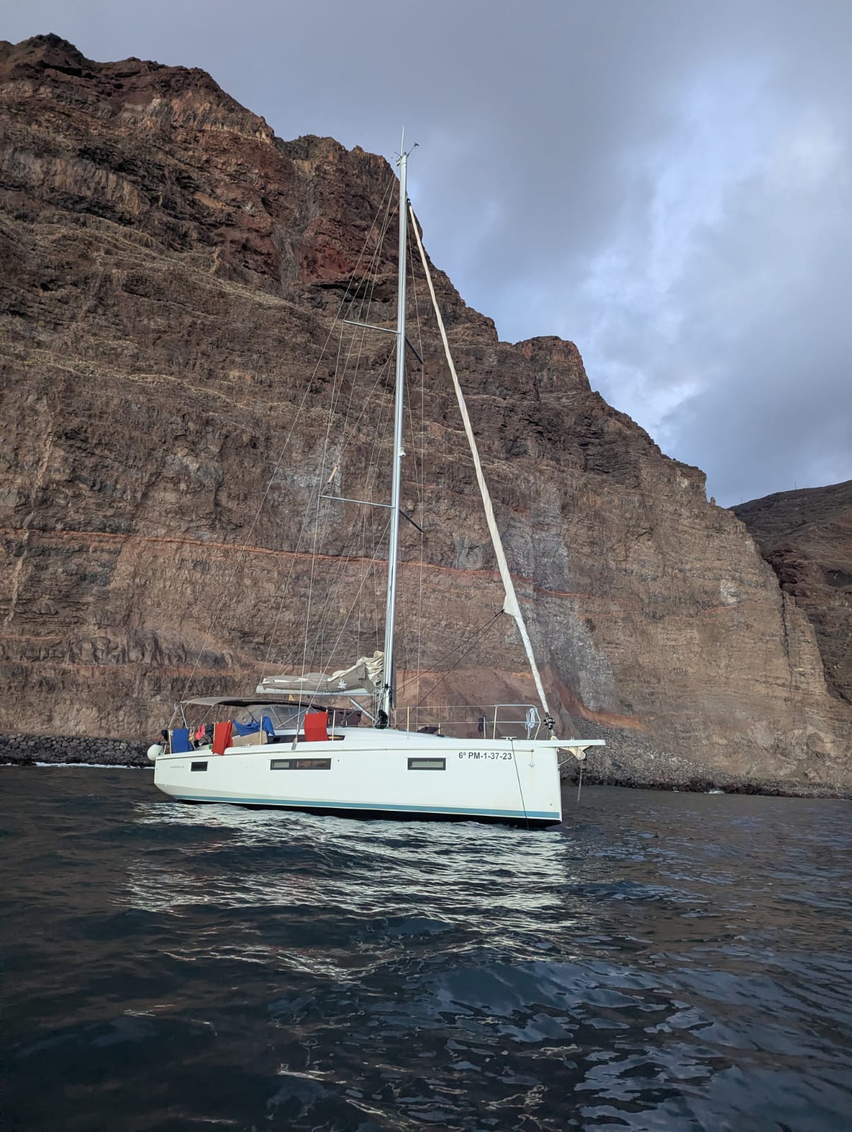 | Sails | Battened main sail, Furling genoa |