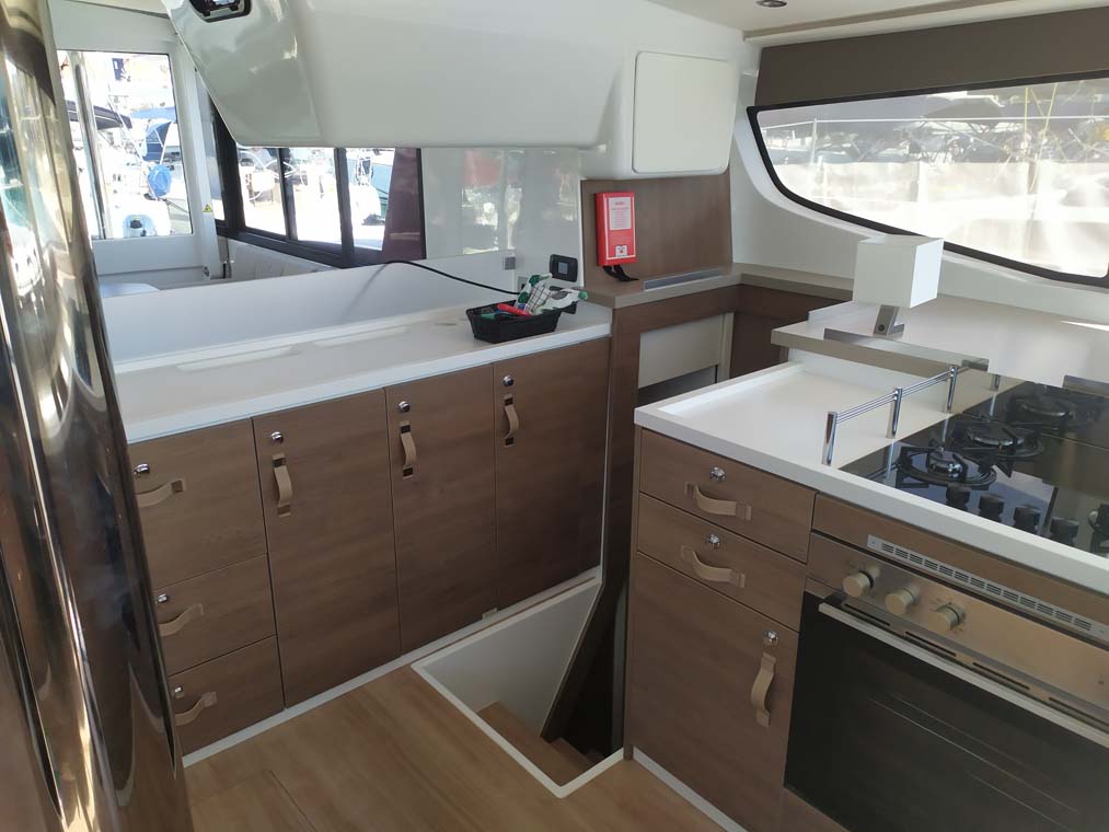 | Inside | 220V sockets, Ice cube machine, Gas oven, Freezer, Generator, Heating, Inverter 12V/220V, Airconditioning (independent from shore power), Refrigerator, Battery charger, Pantry equipment, Radio, Convertible salon table, TV, Warm water, Kettle, Watermaker |