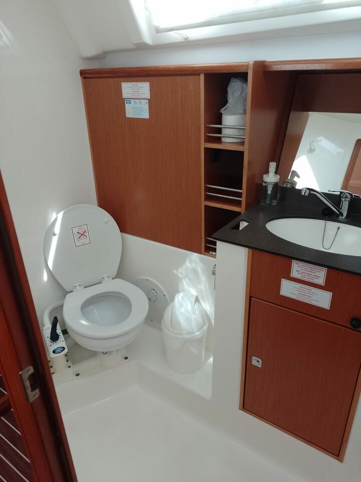 | Safety | AIS receiver, Automatic life jackets, Autopilot, Bosun's chair, First aid kit, Tools, Bowthruster, Electr. bilge pump, Fire extinguisher, GMDSS, Light buoy, Lifebelts, Navigational lights, Fog horn, Emergency tiller, Distress signals, Radar reflector, Life raft, Rescue collar, Torchlight, VHF Radio |