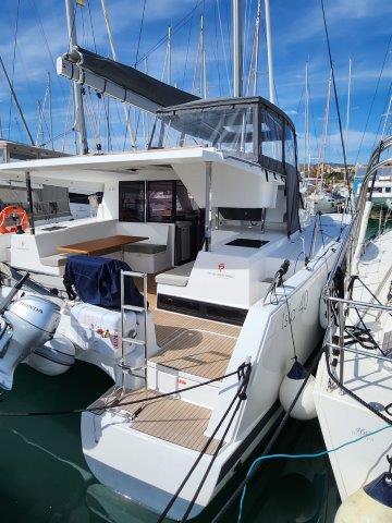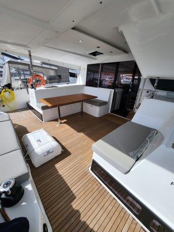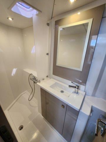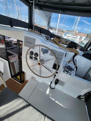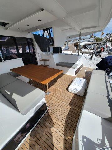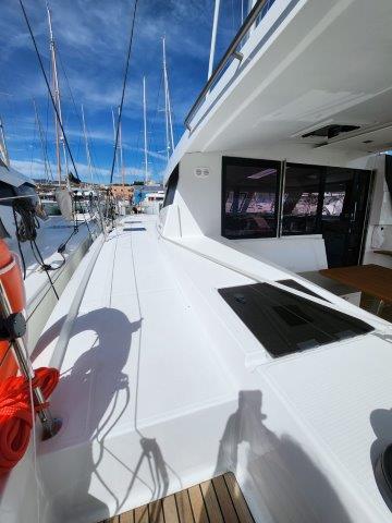 | Outside | Bathing ladder, Bimini top, Cockpit shower, Cockpit speakers, Cockpit cushions, Cockpit table, Davits, Electr. anchor windlass, Fender, Mooring lines, Gangway, BBQ, Stern shower, Solar panels, Teak in cockpit, Drift anchor |