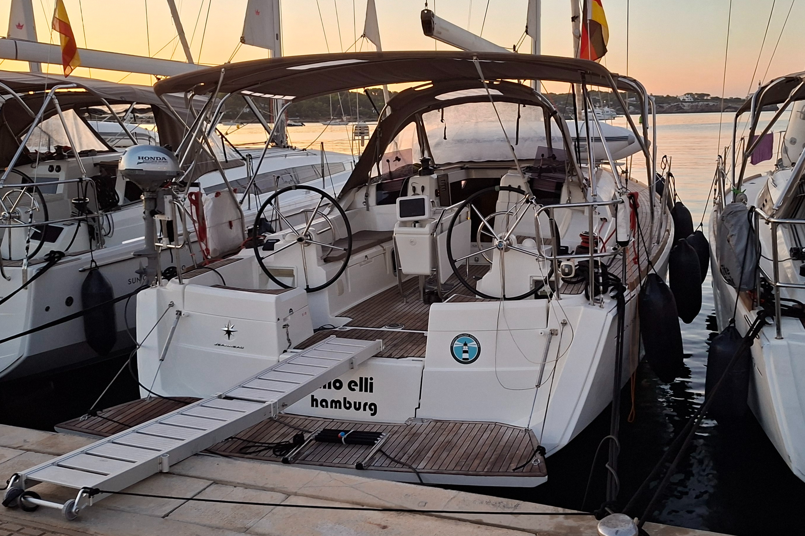 | Safety | AIS receiver, Automatic life jackets, Autopilot, Bosun's chair, First aid kit, Tools, Bowthruster, Electr. bilge pump, Epirb, Flags, GMDSS, Light buoy, Lifebelts, Navigational lights, Emergency tiller, Distress signals, Life raft, Rescue collar, Torchlight, VHF Radio |
