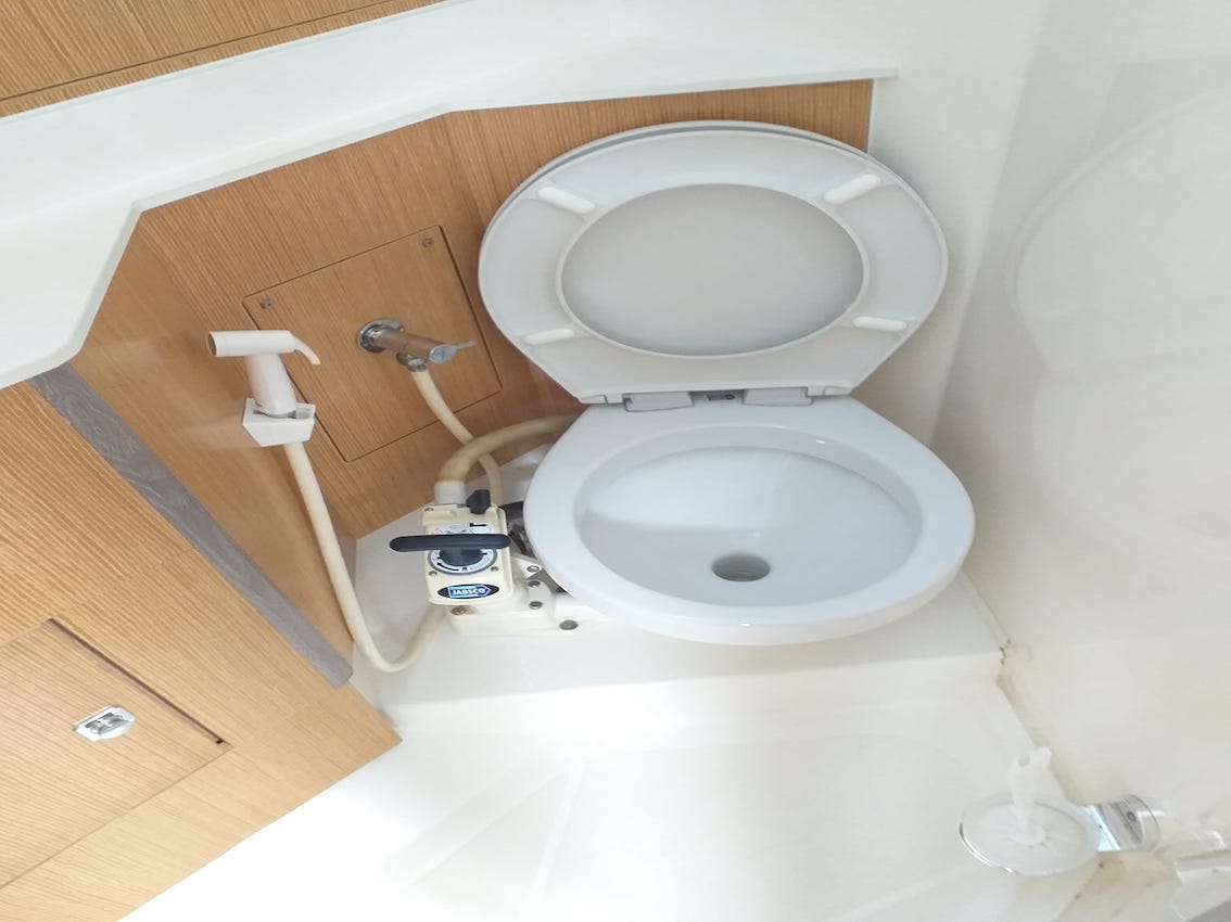 | Inside | 110V socket, 12V/220V sockets, Oven, Broom and dustpan, Bluetooth player, Black water tank, Gas oven, Inverter 12V/220V, Coat hangers, Toilet brush, Refrigerator, Dinghy (byboat) pump, Pantry equipment, Convertible salon table, USB Socket, Warm water |