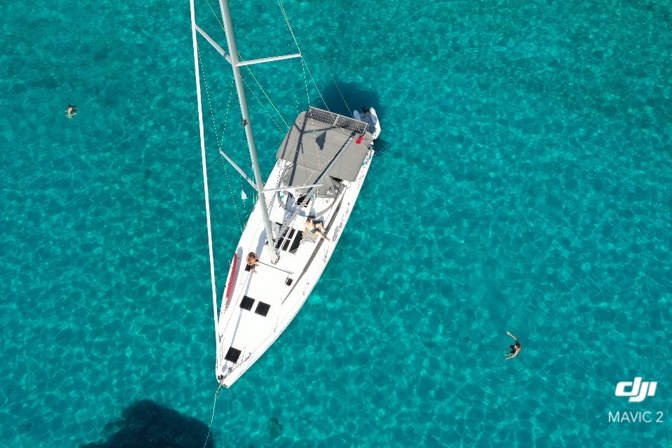 | Outside | Anchor with chain, Bathing ladder, Bathing platform, Bimini top, Boat hook, Cockpit shower, Cockpit cushions, Cover brush, Electr. anchor windlass, Fender, Mooring lines, Gangway, Plastic bucket, Snorkeling gear, Solar panels, Sprayhood, Wire (shroud) cutter, Winches |