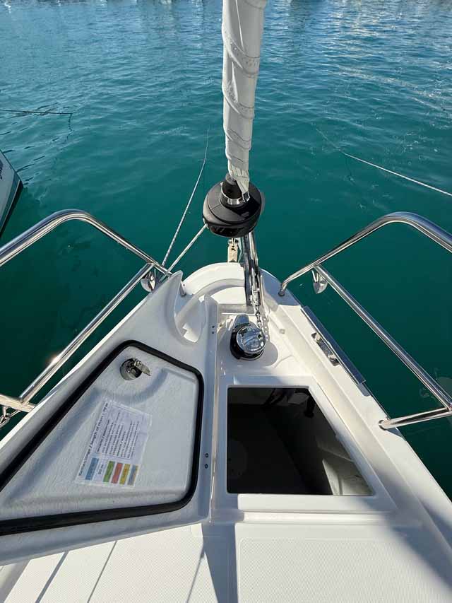 | Safety | Autopilot, Lightning buoy, Bosun's chair, First aid kit, Tools, Bowthruster, Solid life vests, Fire extinguisher, Lifebelts, Engine spare parts , Fog horn, Distress signals, Radar reflector, Repair box for dinghy, Life raft, Searchlight, Torchlight, VHF Radio, Second anchor |