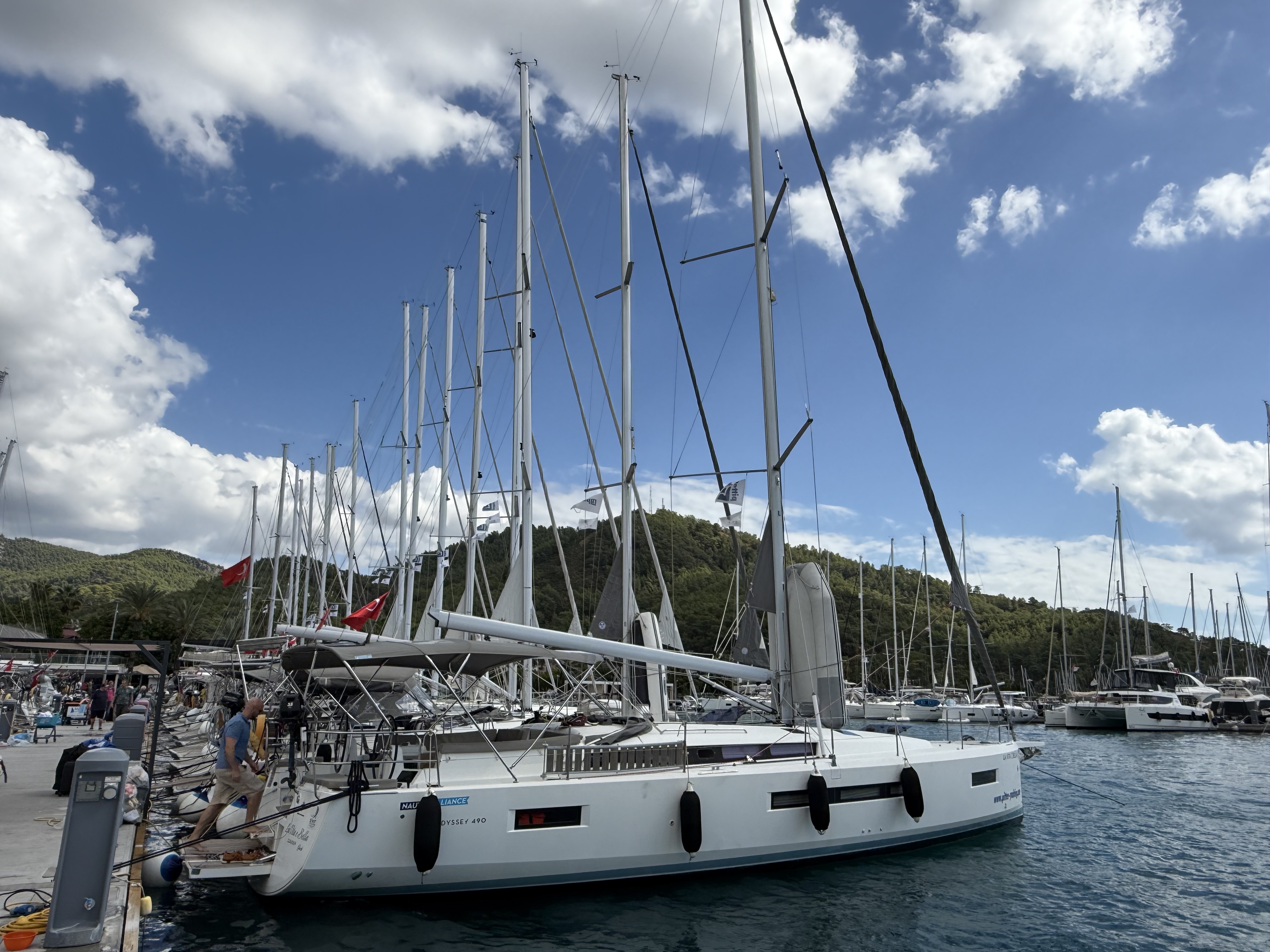 | Sails | Gennaker device, Furling genoa, Furling main sail |